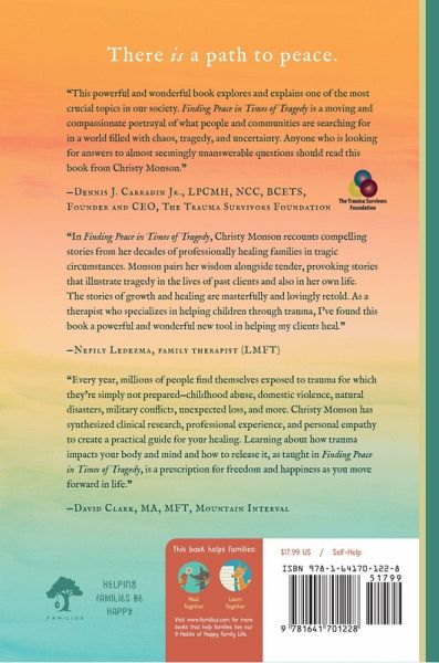 Therapist Christy Monson professionally and compassionately describes how tragedy physically changes the brain and the body, and she provides powerful techniques to help heal those invisible wounds and cope with the turmoil of our day. Through detailed research, years of experience, and detailed interviews with survivors, Monson shows that there is hope for not just peace but also joy after tragedy.