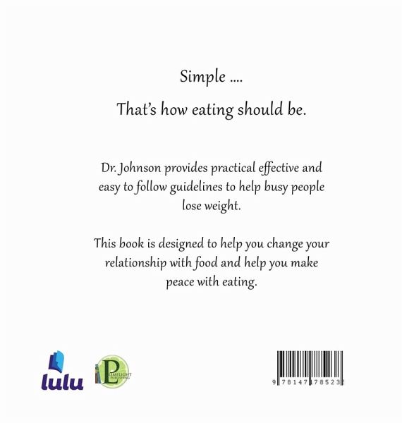 Simple .... That's how eating should be. Dr. Johnson provides practical effective and easy to follow guidelines to help busy people lose weight . This book is designed to help you change your relationship with food and help you make peace with eating.