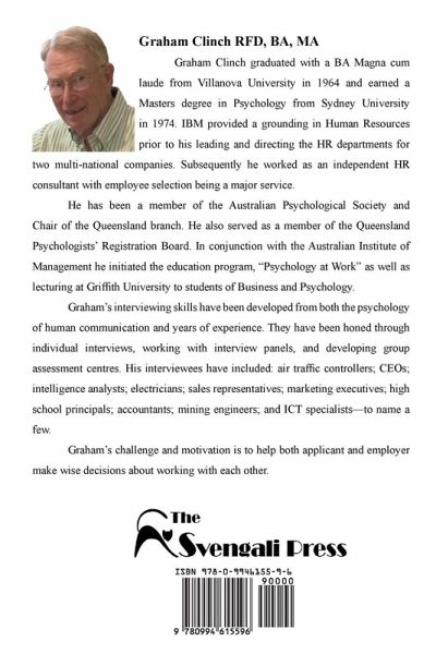 Graham Clinch graduated with a BA Magna cum laude from Villanova University in 1964 and earned a Masters degree in Psychology from Sydney University in 1974. IBM provided a grounding in Human Resources prior to his leading and directing the HR departments for two multi-national companies. Subsequently he worked as an independent HR consultant with employee selection being a major service. He has been a member of the Australian Psychological Society and Chair of the Queensland branch. He also served as a member of the Queensland Psychologists' Registration Board. In conjunction with the Australian Institute of Management he initiated the education program, "Psychology at Work" as well as lecturing at Griffith University to students of Business and Psychology. Graham's interviewing skills have been developed from both the psychology of human communication and years of experience. They have been honed through individual interviews, working with interview panels, and developing group assessment centres. His interviewees have included: air traffic controllers; CEOs; intelligence analysts; electricians; sales representatives; marketing executives; high school principals; accountants; mining engineers; and ICT specialists - to name a few. Graham's challenge and motivation is to help both applicant and employer make wise decisions about working with each other.