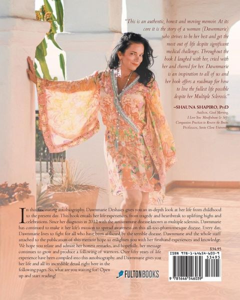 In this fascinating autobiography, Dawnmarie Deshaies gives you an in-depth look at her life from childhood to the present day. This book entails her life experiences, from tragedy and heartbreak to uplifting highs and celebrations. Since her diagnosis in 2012 with the autoimmune disease known as multiple sclerosis, Dawnmarie has continued to make it her life's mission to spread awareness on this all-too-phantomesque disease. Every day, Dawnmarie lives to fight for all who have been afflicted by the terrible disease. Dawnmarie and the whole staff attached to the publication of this memoir hope to enlighten you with her firsthand experiences and knowledge. We hope you relate and admire her honest remarks, and hopefully, her message continues to grow and produce a following of warriors. Over fifty years of life experience have been compiled into this autobiography, and Dawnmarie gives you her life and all its incredible detail right here in the following pages. So, what are you waiting for? Open up and start reading!