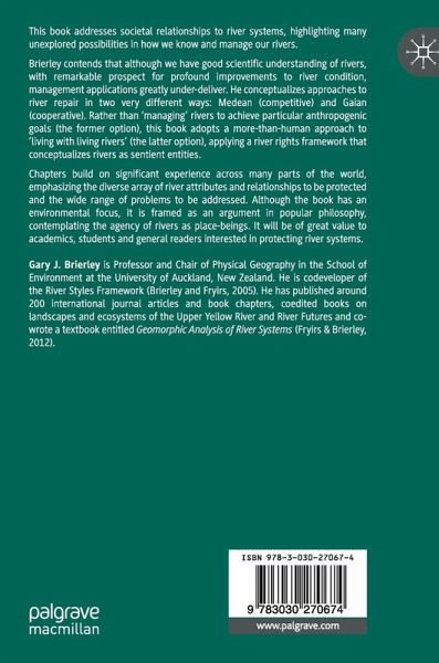Brierley contends that although we have good scientific understanding of rivers, with remarkable prospect for profound improvements to river condition, management applications greatly under-deliver. He conceptualizes approaches to river repair in two very different ways: Medean (competitive) and Gaian (cooperative). Rather than 'managing' rivers to achieve particular anthropogenic goals (the former option), this book adopts a more-than-human approach to 'living with living rivers' (the latter option), applying a river rights framework that conceptualizes rivers as sentient entities.