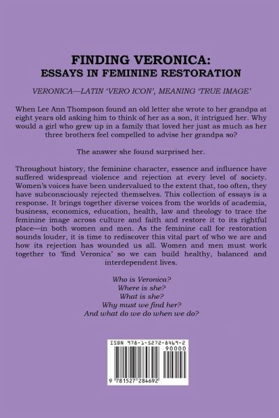 Veronica-Latin 'Vero Icon', meaning 'True Image' When Lee Ann Thompson found an old letter she wrote to her grandpa at eight years old asking him to think of her as a son, it intrigued her. Why would a girl who grew up in a family that loved her just as much as her three brothers feel compelled to advise her grandpa so? The answer she found led to this book. It examines how the historical and widespread violence and rejection of the feminine character, essence and influence have too often led women to undervalue themselves. This collection brings together diverse voices from the worlds of academia, business, economics, education, health, law and theology. It traces the feminine image across culture and faith so that it can be restored to its rightful place-in both women and men. ¿Contributors Owen May writes as a theologian bringing a study taken from the Christian scriptures on biblical equality. Sarah Snyder writes on the uniqueness of the female menstrual cycle and its story in faith, societal and creational life. Joe Banfield's deep and discerning chapter challenges previously held theological interpretation of masculinity. Sue Mitchell looks at the Genesis origin narrative to take us on a primal journey of identity and substance regarding the feminine. Rebecca Jackson draws from wide experience as a practitioner working with victims of sexual abuse and emotional neglect. Julie Tomlin takes us deep into the memory of female and feminine experience and our connection to the earth. Dion Johnson writes on the power that women being reconciled to one another can bring, including around race. Gayle Scott looks at our reality in creation, highlighting the moral reciprocity between the land and human beings. Spencer Thompson guides us through the challenging landscape of economic imbalance and broken theories. Laurence Wilkinson focuses on the foundations of English Common Law and whether it can be viewed as feminine or masculine or both. Lindsay Thompson's reflections are drawn from her classroom observations on the development of gender awareness. Dr Andy Knox examines what an inclusive community looks like when implementing the equitable qualities of masculine and feminine. Georgia May offers wisdom as an experienced reconciler to discuss a pathway to the journey of restoration. Nadiya Takolia's insight into the feminine aspect of Islam brings resonance across faith boundaries.