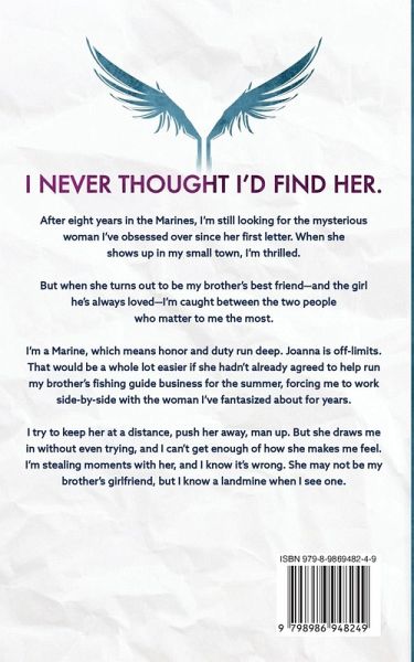 I never thought I'd find her. After eight years in the Marines, I'm still looking for the mysterious woman I've obsessed over since her first letter. When she shows up in my small town, I'm thrilled. But when she turns out to be my brother's best friend--and the girl he's always loved--I'm caught between the two people who matter to me the most. I'm a Marine, which means honor and duty run deep. Joanna is off-limits. That would be a whole lot easier if she hadn't already agreed to help run my brother's fishing guide business for the summer, forcing me to work side-by-side with the woman I've fantasized about for years. I try to keep her at a distance, push her away, man up. But she draws me in without even trying, and I can't get enough of how she makes me feel. I'm stealing moments with her, and I know it's wrong. She may not be my brother's girlfriend, but I know a landmine when I see one.