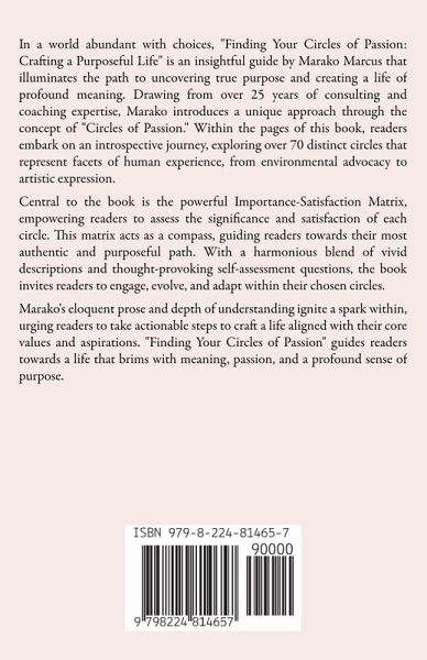 In a world abundant with choices, "Finding Your Circles of Passion: Crafting a Purposeful Life" is an insightful guide by Marako Marcus that illuminates the path to uncovering true purpose and creating a life of profound meaning. Drawing from over 25 years of consulting and coaching expertise, Marako introduces a unique approach through the concept of "Circles of Passion." Within the pages of this book, readers embark on an introspective journey, exploring over 70 distinct circles that represent facets of human experience, from environmental advocacy to artistic expression. Central to the book is the powerful Importance-Satisfaction Matrix, empowering readers to assess the significance and satisfaction of each circle. This matrix acts as a compass, guiding readers towards their most authentic and purposeful path. With a harmonious blend of vivid descriptions and thought-provoking self-assessment questions, the book invites readers to engage, evolve, and adapt within their chosen circles. Marako's eloquent prose and depth of understanding ignite a spark within, urging readers to take actionable steps to craft a life aligned with their core values and aspirations. "Finding Your Circles of Passion" guides readers towards a life that brims with meaning, passion, and a profound sense of purpose.