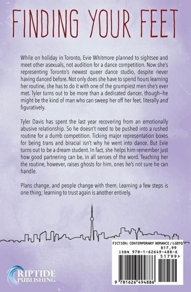 While on holiday in Toronto, Evie Whitmore planned to sightsee and meet other asexuals, not audition for a dance competition. Now she's representing Toronto's newest queer dance studio, despite never having danced before. Not only does she have to spend hours learning her routine, she has to do it with one of the grumpiest men she's ever met. Tyler turns out to be more than a dedicated dancer, though - he might be the kind of man who can sweep her off her feet, literally and figuratively. Tyler Davis has spent the last year recovering from an emotionally abusive relationship. So he doesn't need to be pushed into a rushed routine for a dumb competition. Ticking major representation boxes for being trans and biracial isn't why he went into dance. But Evie turns out to be a dream student. In fact, she helps him remember just how good partnering can be, in all senses of the word. Teaching her the routine, however, raises ghosts for him, ones he's not sure he can handle. Plans change, and people change with them. Learning a few steps is one thing; learning to trust again is another entirely.