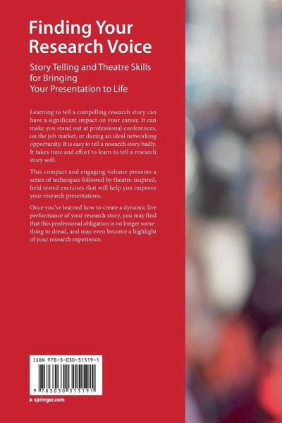 Learning to tell a compelling research story can have a significant impact on your career. It can make you stand out at professional conferences, on the job market, or during an ideal networking opportunity. It is easy to tell a research story badly. It takes time and effort to learn to tell a research story well. This compact and engaging volume presents a series of techniques followed by theatre-inspired, field tested exercises that will help you improve your research presentations. Once you've learned how to create a dynamic live performance of your research story, you may find that this professional obligation is no longer something to dread, and may even become a highlight of your research experience.