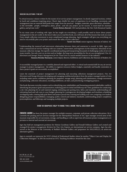 Dedication List of Tables Foreword by Aileen Chuk, Chief Registrar, The Metropolitan Museum of Art, NYC. Introduction Part 1: Considering project management for the arts. Chapter 1: Considering your project. Chapter 2: Considering an exhibition installation. Chapter 3: Considering commercial art service contractors. Chapter 4: Considering collection relocations. Chapter 5: Considering Storage Relocations. Chapter 6: Considering other Industry Projects. Part 2: Managing your Project. Chapter 7: Receiving the Written Request initiating the Project. Chapter 8: Planning and Conducting a Site Visit. Chapter 9: Developing a quote based on your site visit Chapter 10: Estimating and quoting your project. Chapter 11: Developing a Budget. Chapter 12: Developing a timeline for your project. Chapter 13: Managing labor and quality control. Chapter 14: Controlling and tracking your project. Chapter 15: Closing out your project. Index About the Author
