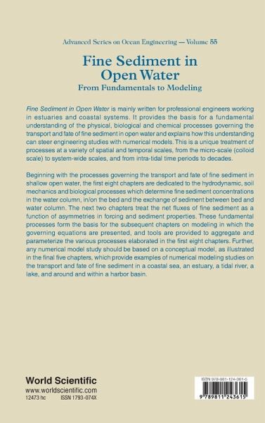 Fine Sediment in Open Water is mainly written for professional engineers working in estuaries and coastal systems. It provides the basis for a fundamental understanding of the physical, biological and chemical processes governing the transport and fate of fine sediment in open water and explains how this understanding can steer engineering studies with numerical models. This is a unique treatment of processes at a variety of spatial and temporal scales, from the micro-scale (colloid scale) to system-wide scales, and from intra-tidal time periods to decades.Beginning with the processes governing the transport and fate of fine sediment in shallow open water, the first eight chapters are dedicated to the hydrodynamic, soil mechanics and biological processes which determine fine sediment concentrations in the water column, in/on the bed and the exchange of sediment between bed and water column. The next two chapters treat the net fluxes of fine sediment as a function of asymmetries in forcing and sediment properties. These fundamental processes form the basis for the subsequent chapters on modeling in which the governing equations are presented, and tools are provided to aggregate and parameterize the various processes elaborated in the first eight chapters. Further, any numerical model study should be based on a conceptual model, as illustrated in the final five chapters, which provide examples of numerical modeling studies on the transport and fate of fine sediment in a coastal sea, an estuary, a tidal river, a lake, and around and within a harbor basin.Related Link(s)