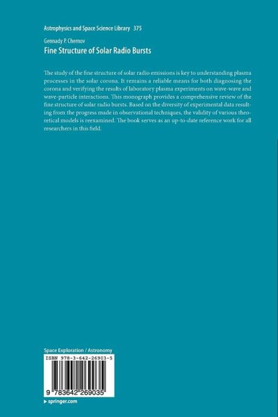 The study of the fine structure of solar radio emissions is key to understanding plasma processes in the solar corona. It remains a reliable means for both diagnosing the corona and verifying the results of laboratory plasma experiments on wave-wave and wave-particle interactions. This monograph provides a comprehensive review of the fine structure of solar radio bursts. Based on the diversity of experimental data resulting from the progress made in observational techniques, the validity of various theoretical models is reexamined. The book serves as an up-to-date reference work for all researchers in this field.