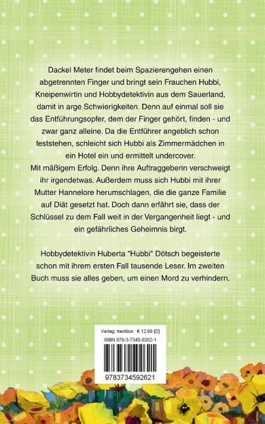 Dackel Meter findet beim Spazierengehen einen abgetrennten Finger und bringt sein Frauchen Hubbi, Kneipenwirtin und Hobbydetektivin aus dem Sauerland, damit in arge Schwierigkeiten. Denn auf einmal soll sie das Entführungsopfer, dem der Finger gehört, finden - und zwar ganz alleine. Da die Entführer angeblich schon feststehen, schleicht sich Hubbi als Zimmermädchen in ein Hotel ein und ermittelt undercover. Mit mäßigem Erfolg. Denn ihre Auftraggeberin verschweigt ihr irgendetwas. Außerdem muss sich Hubbi mit ihrer Mutter Hannelore herumschlagen, die die ganze Familie auf Diät gesetzt hat. Doch dann erfährt sie, dass der Schlüssel zu dem Fall weit in der Vergangenheit liegt - und ein gefährliches Geheimnis birgt.