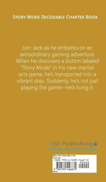 Step into the thrilling world of martial arts and reading with ""Finish Him,"" an action-packed chapter book that blends the excitement of gaming with the power of storytelling. Designed for beginning readers from grades 2-6, this captivating addition to the decodable phonics ""Story Mode"" chapter book series will leave you on the edge of your seat. Join Jack as he embarks on an extraordinary gaming adventure. When he discovers a button labeled ""Story Mode"" in his new martial arts game, he's transported into a vibrant dojo. Suddenly, he's not just playing the game-he's living it. Experience the adrenaline rush as Jack dons a white karate uniform and faces off against formidable opponents. With each chapter, young readers will follow Jack's journey, overcoming challenges, learning vital skills, and gaining the confidence to face the unexpected. As they dive deeper into the story, they'll also reinforce their reading skills, transforming decoding into an exciting and immersive activity. From sparring with experienced fighters to honing his martial arts techniques, Jack's adventure becomes a real test of his abilities. The pain he feels and the determination he exhibits remind him that this is no ordinary game-it's an immersive experience that blurs the lines between virtual and reality. With each page, young readers will find themselves captivated by Jack's growth and resilience. As they witness his progression from novice to skilled fighter, they too will experience the thrill of achievement and the joy of conquering challenges. ""Finish Him"" seamlessly combines entertainment and education, immersing readers in a world where gaming and reading intersect. This chapter book is a must-have for young readers seeking to improve their reading skills while embarking on a martial arts adventure. Join Jack as he fights his way to victory, and discover the incredible power of reading along the way. So, are you ready to unleash your inner martial artist? Dive into ""Finish Him"" and prepare for an unforgettable gaming journey where the only way to win is to read!