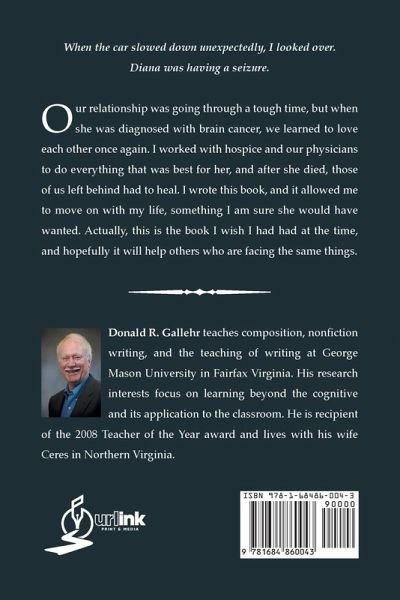 When the car slowed down unexpectedly, I looked over. Diana was having a seizure. Our relationship was going through a tough time, but when she was diagnosed with brain cancer, we learned to love each other once again. I worked with hospice and our physicians to do everything that was best for her, and after she died, those of us left behind had to heal. I wrote this book, and it allowed me to move on with my life, something I am sure she would have wanted. Actually, this is the book I wish I had had at the time, and hopefully it will help others who are facing the same things.