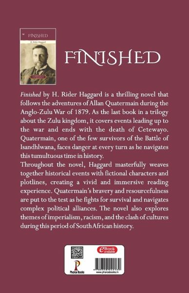 Finished by H. Rider Haggard is a thrilling novel that follows the adventures of Allan Quatermain during the Anglo-Zulu War of 1879. As the last book in a trilogy about the Zulu kingdom, it covers events leading up to the war and ends with the death of Cetewayo. Quatermain, one of the few survivors of the Battle of Isandhlwana, faces danger at every turn as he navigates this tumultuous time in history. Throughout the novel, Haggard masterfully weaves together historical events with fictional characters and plotlines, creating a vivid and immersive reading experience. Quatermain's bravery and resourcefulness are put to the test as he fights for survival and navigates complex political alliances. The novel also explores themes of imperialism, racism, and the clash of cultures during this period of South African history.