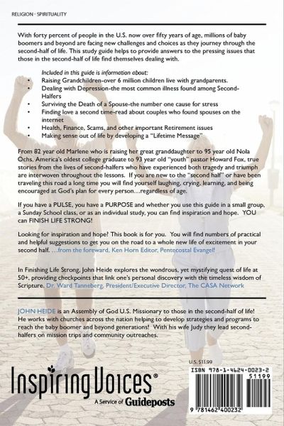 With forty percent of people in the U.S. now over fifty years of age, millions of baby boomers and beyond are facing new challenges and choices as they journey through the second-half of life. This study guide helps to provide answers to the pressing issues that those in the second-half of life find themselves dealing with. Included in this guide is information about: Raising Grandchildren-over 6 million children live with grandparents. Dealing with Depression-the most common illness found among Second-Halfers Surviving the Death of a Spouse-the number one cause for stress Finding love a second time-read about couples who found spouses on the internet Health, Finance, Scams, and other important Retirement issues Making sense out of life by developing a "Lifetime Message" From 82 year old Marlene who is raising her great granddaughter to 95 year old Nola Ochs, America's oldest college graduate to 93 year old youth pastor Howard Fox, true stories from the lives of second-halfers who have experienced both tragedy and triumph are interwoven throughout the lessons. If you are new to the "second half" or have been traveling this road a long time you will find yourself laughing, crying, learning, and being encouraged at God's plan for every person...regardless of age. If you have a PULSE, you have a PURPOSE and whether you use this guide in a small group, a Sunday School class, or as an individual study, you can find inspiration and hope. YOU can FINISH LIFE STRONG! Looking for inspiration and hope? This book is for you. You will find numbers of practical and helpful suggestions to get you on the road to a whole new life of excitement in your second half. ...from the foreward, Ken Horn Editor Pentecostal Evangel!