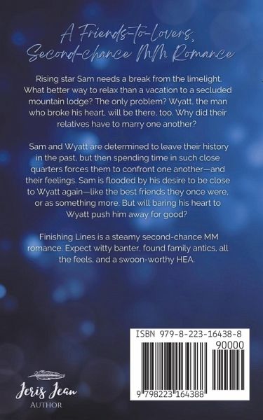 A Friends-to-Lovers, Second-chance MM Romance Rising star Sam needs a break from the limelight. What better way to relax than a vacation to a secluded mountain lodge? The only problem? Wyatt, the man who broke his heart, will be there, too. Why did their relatives have to marry one another? Sam and Wyatt are determined to leave their history in the past, but then spending time in such close quarters forces them to confront one another—and their feelings. Sam is flooded by his desire to be close to Wyatt again—like the best friends they once were, or as something more. But will baring his heart to Wyatt push him away for good? Finishing Lines is a steamy second-chance MM romance. Expect witty banter, found family antics, all the feels, and a swoon-worthy HEA.