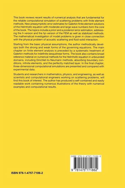 A cognitive journey towards the reliable simulation of scattering problems using finite element methods, with the pre-asymptotic analysis of Galerkin FEM for the Helmholtz equation with moderate and large wave number forming the core of this book. Starting from the basic physical assumptions, the author methodically develops both the strong and weak forms of the governing equations, while the main chapter on finite element analysis is preceded by a systematic treatment of Galerkin methods for indefinite sesquilinear forms. In the final chapter, three dimensional computational simulations are presented and compared with experimental data. The author also includes broad reference material on numerical methods for the Helmholtz equation in unbounded domains, including Dirichlet-to-Neumann methods, absorbing boundary conditions, infinite elements and the perfectly matched layer. A self-contained and easily readable work.