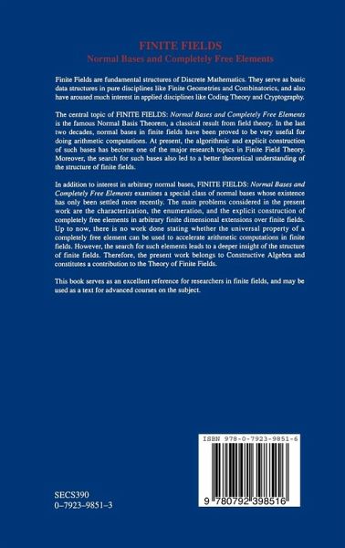 Finite Fields are fundamental structures of Discrete Mathematics. They serve as basic data structures in pure disciplines like Finite Geometries and Combinatorics, and also have aroused much interest in applied disciplines like Coding Theory and Cryptography. A look at the topics of the proceed ings volume of the Third International Conference on Finite Fields and Their Applications (Glasgow, 1995) (see [18]), or at the list of references in I. E. Shparlinski's book [47] (a recent extensive survey on the Theory of Finite Fields with particular emphasis on computational aspects), shows that the area of Finite Fields goes through a tremendous development. The central topic of the present text is the famous Normal Basis Theo rem, a classical result from field theory, stating that in every finite dimen sional Galois extension E over F there exists an element w whose conjugates under the Galois group of E over F form an F-basis of E (i. e. , a normal basis of E over F; w is called free in E over F). For finite fields, the Nor mal Basis Theorem has first been proved by K. Hensel [19] in 1888. Since normal bases in finite fields in the last two decades have been proved to be very useful for doing arithmetic computations, at present, the algorithmic and explicit construction of (particular) such bases has become one of the major research topics in Finite Field Theory.