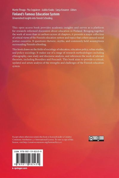 This open access book provides academic insights and serves as a platform for research-informed discussion about education in Finland. Bringing together the work of more than 50 authors across 28 chapters, it presents a major collection of critical views of the Finnish education system and topics that cohere around social justice concerns. It questions rhetoric, myths, and commonly held assumptions surrounding Finnish schooling.