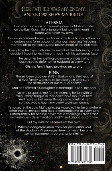 Her father was my enemy, and now she's my bride. Alessia I was born into one of the most powerful Mafia families on the East Coast. Unfortunately, being a girl meant my future was never my own. Our rivals are weakened, and now is the time to strengthen our numbers and form powerful alliances, meaning I'm being married off to the callous and brazen head of the Irish Mob. Every time he tries to charm me with that devilish smirk, I can't decide if I want to kiss him or smack it off his gorgeous face. He assumes he's getting a demure princess who was raised to defer to her husband at every turn. Oh, the fun I'll have proving him wrong. Finn There's been a power shift in Boston, and the head of a rival family wants to strike a bargain to ensure the destruction of our mutual enemy. And he's offered his daughter in marriage to seal the deal. No one prepared me for the stunning hellion with a razor-sharp tongue in that delectable mouth of hers. And I sure as hell never thought one brush of her soft lips would haunt my every waking moment. It's no secret the cold Mafia princess would rather be anywhere other than at my side and likes to contradict me at every turn. Unfortunately for her, I've never met a challenge I didn't face with relentless determination, and I'm not about to start now. But my wife has enemies of her own. When a dangerous man from her past slithers out of the shadows, I'll prove just how ruthless I become when someone threatens what's mine