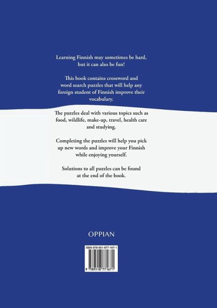 Learning Finnish may sometimes be hard, but it can also be fun! This book contains crossword and word search puzzles that will help any foreign student of Finnish improve their vocabulary. The puzzles deal with various topics such as food, wildlife, make-up, travel, health care and studying. Completing the puzzles will help you pick up new words and improve your Finnish while enjoying yourself. Solutions to all puzzles can be found at the end of the book.