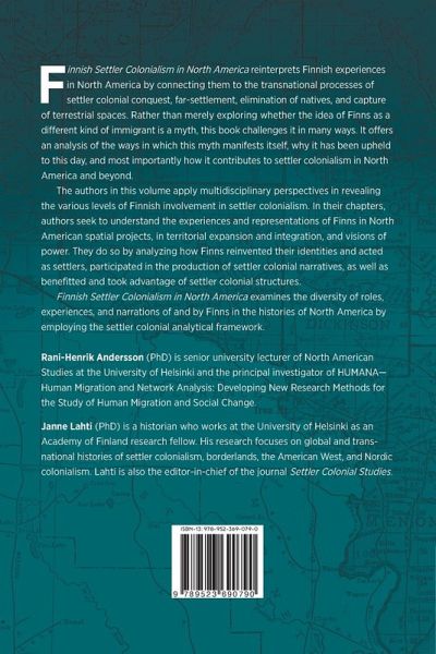 Finnish Settler Colonialism in North America reinterprets Finnish experiences in North America by connecting them to the transnational processes of settler colonial conquest, far-settlement, elimination of natives, and capture of terrestrial spaces. Rather than merely exploring whether the idea of Finns as a different kind of immigrant is a myth, this book challenges it in many ways. It offers an analysis of the ways in which this myth manifests itself, why it has been upheld to this day, and most importantly how it contributes to settler colonialism in North America and beyond. The authors in this volume apply multidisciplinary perspectives in revealing the various levels of Finnish involvement in settler colonialism. In their chapters, authors seek to understand the experiences and representations of Finns in North American spatial projects, in territorial expansion and integration, and visions of power. They do so by analyzing how Finns reinvented their identities and acted as settlers, participated in the production of settler colonial narratives, as well as benefitted and took advantage of settler colonial structures. Finnish Settler Colonialism in North America aims to challenge traditional histories of Finnish migration, in which Finns have typically been viewed almost in isolation from the broader American context, not to mention colonialism. The book examines the diversity of roles, experiences, and narrations of and by Finns in the histories of North America by employing the settler colonial analytical framework. Rani-Henrik Andersson (PhD) is senior university lecturer of North American Studies at the University of Helsinki and the principal investigator of HUMANA-Human Migration and Network Analysis: Developing New Research Methods for the Study of Human Migration and Social Change. Janne Lahti (PhD) is a historian who works at the University of Helsinki as an Academy of Finland research fellow. His research focuses on global and transnational histories of settler colonialism, borderlands, the American West, and Nordic colonialism. Lahti is also the editor-in-chief of the journal Settler Colonial Studies.