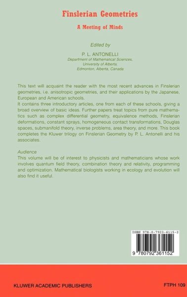 `aside from being well organized, typesetting of the book as well as proof reading is done very carefully. The layout is professional. The book deserves attention not only from mathematicians but also from natural scientists, especially for theoretical physics. It certainly helps to overcome such judges about Finsler Geometry like `an impenetrable forest whose entire vegetation consists of tenors'or `a jungle of tenors'. This book is highly readable and exciting.' Journal of Geodesy, 75:(5-6)(2001) `It will be of interest to physicist and mathematicians whose work involves quantum field theory, general relativity and gravitation, programming and optimization. Mathematical biologist working in ecology and evolution will also find it useful.' General Relativity and Gravitation, 33:7 (2001) `Aside from being well organized, typesetting of the book as well as proof reading is done very carefully. The layout is professional.. Nevertheless, this book is highly readable and exciting.' Journal of Geodesy, 75:337-342 (2001)