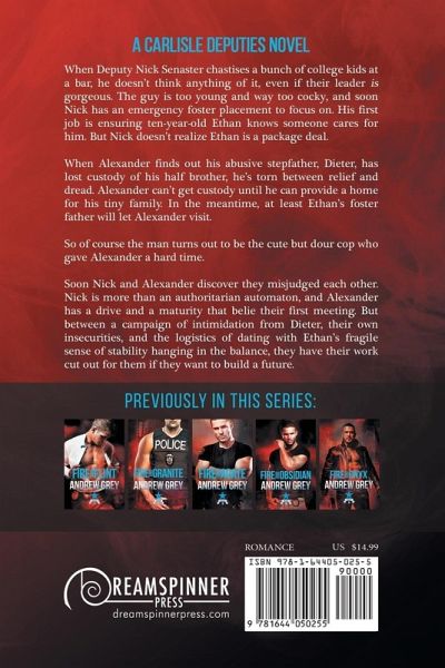 When Deputy Nick Senaster chastises a bunch of college kids at a bar, he doesn't think anything of it, even if their leader is gorgeous. The guy is too young and way too cocky, and soon Nick has an emergency foster placement to focus on. His first job is ensuring ten-year-old Ethan knows someone cares for him. But Nick doesn't realize Ethan is a package deal. When Alexander finds out his abusive stepfather, Dieter, has lost custody of his half brother, he's torn between relief and dread. Alexander can't get custody until he can provide a home for his tiny family. In the meantime, at least Ethan's foster father will let Alexander visit. So of course the man turns out to be the cute but dour cop who gave Alexander a hard time. Soon Nick and Alexander discover they misjudged each other. Nick is more than an authoritarian automaton, and Alexander has a drive and a maturity that belie their first meeting. But between a campaign of intimidation from Dieter, their own insecurities, and the logistics of dating with Ethan's fragile sense of stability hanging in the balance, they have their work cut out for them if they want to build a future.