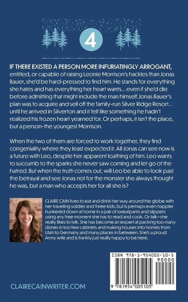 If there existed a person more infuriatingly arrogant, entitled, or capable of raising Leonie Morrison's hackles than Jonas Bauer, she'd be hard-pressed to find him. He stands for everything she hates and has everything her heart wants... even if she'd die before admitting that might include the man himself. Jonas Bauer's plan was to acquire and sell off the family-run Silver Ridge Resort...until he arrived in Silverton and it felt like something he hadn't realized his frozen heart yearned for. Or perhaps, it isn't the place, but a person-the youngest Morrison. When the two of them are forced to work together, they find congeniality where they least expected it. All Jonas can see now is a future with Leo, despite her apparent loathing of him. Leo wants to succumb to the sparks she never saw coming and let go of the hatred. But when the truth comes out, will Leo be able to look past the betrayal and see Jonas not for the monster she always thought he was, but a man who accepts her for all she is?