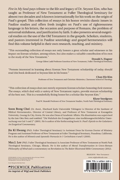 Fire in My Soul pays tribute to the life and legacy of Dr. Seyoon Kim, who has taught as Professor of New Testament at Fuller Theological Seminary for almost two decades and is known internationally for his work on the origin of Paul's gospel. This collection of essays in his honor revisits classic issues in Pauline studies and offers fresh insights on Paul's use of righteousness language in his letters, the occasion and purpose of Romans, the problem of universal sinfulness, and justification by faith. It also presents several exegetical studies on the use of the Old Testament in the gospels. Scholars, students, and pastors interested in Pauline soteriology and gospel hermeneutics will find this volume helpful in their own research, teaching, and ministry.