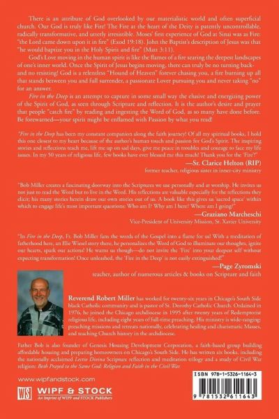 There is an attribute of God overlooked by our materialistic world and often superficial church. Our God is truly like Fire! The Fire at the heart of the Deity is patently uncontrollable, radically transformative, and utterly irresistible. Moses' first experience of God at Sinai was as Fire: ""the Lord came down upon it in fire"" (Exod 19:18). John the Baptist's description of Jesus was that ""he would baptize you in the Holy Spirit and fire"" (Matt 3:11). God's Love moving in the human spirit is like the flames of a fire searing the deepest landscapes of one's inner world. Once the Spirit of Jesus begins moving, there can truly be no turning back--and no resisting! God is a relentless ""Hound of Heaven"" forever chasing you, a fire burning up all that stands between you and full surrender, a passionate Lover pursuing you and never taking ""no"" for an answer. Fire in the Deep is an attempt to capture in some small way the elusive and energizing power of the Spirit of God, as seen through Scripture and reflection. It is the author's desire and prayer that people ""catch fire"" by reading and ingesting the Word of God, as so many have done before. Be forewarned--your spirit might be enflamed with Passion by what you read!