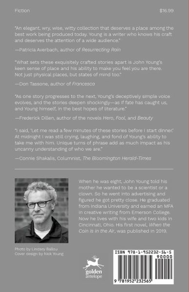 When he was eight, John Young told his mother he wanted to be a scientist or a clown. So he went into advertising and figured he got pretty close. He graduated from Indiana University and earned an MFA in creative writing from Emerson College. Now he lives with his wife and two kids in Cincinnati, Ohio. His first novel, When the Coin Is in the Air, was published in 2019.