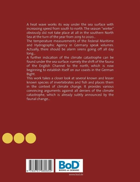 A heat wave works its way under the sea surface with increasing speed from south to north. The season "winter" obviously did not take place at all in the southern North Sea at the turn of the year from 2019 to 2020...The temperature measurements of the Federal Maritime and Hydrographic Agency in Germany speak volumes. Actually, there should be alarm sirens going off all day long...A further indication of the climate catastrophe can be found under the sea surface: namely the shift of the fauna of the English Channel to the north, which is now beginning to establish itself on our coasts in the German Bight.This work takes a closer look at several known and lesser known species of invertebrates and fish and places them in the context of climate change. It provides various convincing arguments against all deniers of the climate catastrophe, which is already subtly announced by the faunal change...