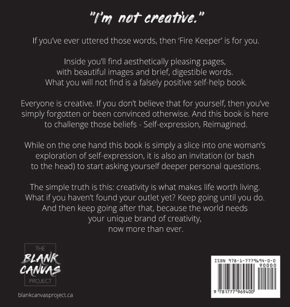 "I'm not creative." If you've ever uttered those words, then 'Fire Keeper' is for you. Inside you'll find aesthetically pleasing pages, with beautiful images and brief, digestible words. What you will not find is a falsely positive self-help book. Everyone is creative. If you don't believe that for yourself, then you've simply forgotten or been convinced otherwise. And this book is here to challenge those beliefs - Self-expression, Reimagined. While on the one hand this book is simply a slice into one woman's exploration of self-expression, it is also an invitation (or bash to the head) to start asking yourself deeper personal questions. The simple truth is this: creativity is what makes life worth living. What if you haven't found your outlet yet? Keep going until you do. And then keep going after that, because the world needs your unique brand of creativity, now more than ever.