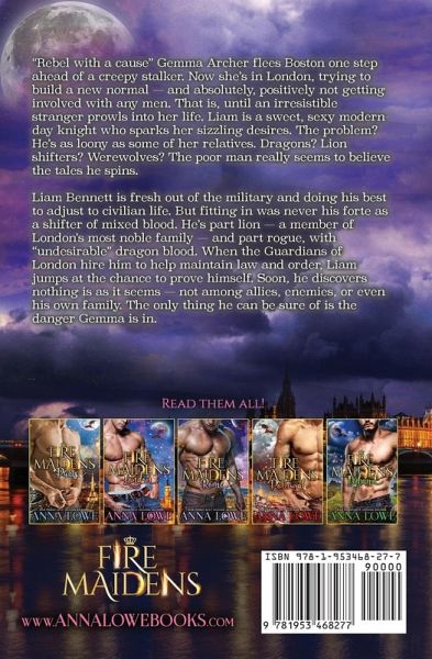 A lionhearted hero + scheming shifter factions = unforgettable PNR! "Rebel with a cause" Gemma Archer flees Boston one step ahead of a creepy stalker. Now she's in London, trying to build a new normal - and absolutely, positively not getting involved with any men. That is, until an irresistible stranger prowls into her life. Liam is a sweet, sexy modern-day knight who sparks her sizzling desires. The problem? He's as loony as some of her relatives. Dragons? Lion shifters? Werewolves? The poor man really seems to believe the tales he spins. Liam Bennett is fresh out of the military and doing his best to adjust to civilian life. But fitting in was never his forte as a shifter of mixed blood. He's part lion - a member of London's most noble family - and part rogue, with "undesirable" dragon blood. When the Guardians of London hire him to help maintain law and order, Liam jumps at the chance to prove himself. Soon, he discovers nothing is as it seems - not among his allies, enemies, or even his own family. The only thing he can be sure of is the danger Gemma is in. A deadly foe has stalked Gemma for thousands of miles, and Liam has no choice but to spirit away his destined mate to his ancestral dragon home - the remote castle in Wales he's been avoiding for years. But hiding out is not enough. Can Liam and Gemma survive cunning enemies and the deceptions of the past? Anna Lowe's FIRE MAIDENS: Billionaires & Bodyguards series Danger lurks over Europe, where a ruthless dragon clan plots to seize power in the grandest, most glamorous cities. The guardians of old have summoned a new generation of shifter heroes to protect the castles, cathedrals, and cobblestoned streets of their ancestral homes - and to seek out the last of the Fire Maidens, women coveted by the dark lords for their royal blood. Those women are absolutely off-limits to the young warriors tasked with protecting them. But destiny, of course, has other ideas... A series of sizzling paranormal romances with adult content. Each story is a page-turner packed with action, emotion, and romance! No cliff hangers. If you like smoldering hot shapeshifters, military heroes, and royal intrigue, you'll love these books. Join these strong heroines and their alpha heroes in atmospheric locales filled with danger & suspense!
