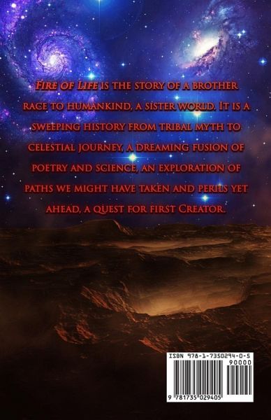 Fire of Life is the story of Phera, a three-mooned planet with night-sky seas of emerald, silver, and blue. In ancient days, the blood-dark Ebrin River swelled in springtime thaw from hardest winter, overflowed its rocky banks, and flooded the wide-strewn villages of the Chaucau. Forced together, their world unmoored, the fishing people flee from the flood-swept plain to the high mountain woods. They wander the wilderness. Season by season, their numbers thin, many lives lost to hunger, beast, and disease. The surviving Chaucau cross into the central valley. With vacant eyes, they limp into the thick-grassed hills of a prosperous herding people. The herders absorb the outcast fishers. Generation by generation, the Chaucau forget their ancient language, their mystic river culture. They intermarry, adopt, shed. But a slender thread survives, refusing to forget, sustained by the mythical poetry born of their wilderness flight. This fierce and bitter remnant marches into the boundless desert wasteland. They push beyond the limits of their flesh, hoping to match their ancestors' courage, challenging law of death and decay, hoping for highest Word once more. Through dust and dreams, the wasteland striders march, their eyes bright seared by pouring vision.