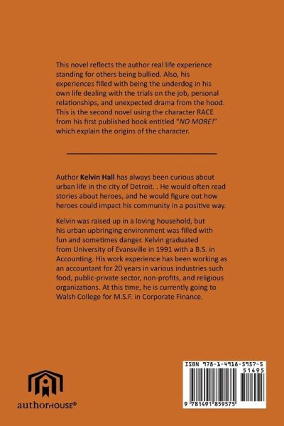 This novel reflects the author real life experience standing for others being bullied. Also, his experiences filled with being the underdog in his own life dealing with the trials on the job, personal relationships, and unexpected drama from the hood. This is the second novel using the character RACE from his first published book entitled "NO MORE!" which explain the origins of the character.