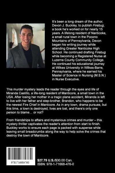 This murder mystery leads the reader through the eyes and life of Miranda Castillo, a life-long resident of Manticore, a small town in the USA. After losing her mother in a tragic plane accident, Miranda is left to live with her father and step-brother, Brandon, who happens to be the newest Fire Chief in Manticore. As in any town, drama pursues, but this time, a town is destroyed, lives are lost, and there's only one person to blame... or not? From friendships to affairs and mysterious crimes and murder - this mystery thriller captivates the reader's attention from start to finish. Buckley works to ensure each page is packed with suspense while leaving small breadcrumbs along the way to help solve the crimes that destroy the town of Manticore.