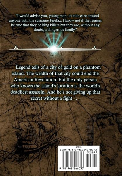 "I would advise you, young man, to take care around anyone with the surname Firefax. I know not if the rumors be true that they be king killers, but they are, without any doubt, a dangerous family." Legend tells of a city of gold on a phantom island. The wealth of that city could end the American Revolution. But the only person who knows the island's location is the world's deadliest assassin. And he's not giving up that secret without a fight . . . The world's oldest family of high-profile assassins, the Firefaxes, have been killing off dignitaries-and being well-compensated to do so-for centuries. The family is thrown into turmoil by their patriarch's death and the return of their cunning, cruel prodigal, Murdoch. Murdoch is the only one left who knows where the Firefax wealth is, kept on a secret island. But Murdoch's former protégé, now turned nemesis, Istäni, who is the leader of a British intelligence network, and Murdoch's former colleagues from a Continental intelligence network are looking for that wealth. These spy networks are bent on tracking down the legendary treasure, whatever the cost, but may have met their match in the wily, dysfunctional family of killers.