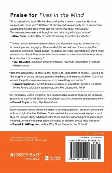Praise for Fires in the Mind "What a refreshing book! Rather than asking the timeworn question 'How can we motivate these kids?' Kathleen Cushman performs a lovely act of conceptual jujutsu and instead asks 'What can the kids tell us about motivation?' The answers are smart and thoughtful and brimming with good advice." --Mike Rose, author, Why School? Reclaiming Education for All of Us "The best school reform creates schools that kids want to go to, where learning is meaningful and engaging. This wonderful book builds on the concept that education should be 'asset based, ' not based on telling kids what they don't know and can't do. Read Fires in the Mind and connect to the voices of students about how they learn most eagerly." --Paul Houston, executive director emeritus, American Association of School Administrators "'Become passionate' is easy to say, hard to do, impossible to compel. Drawing on the insights of young persons, parents, teachers, and experts, Kathleen Cushman reveals the paths to passionate pursuit of something worthwhile." --Howard Gardner, Harvard Graduate School of Education; author, Five Minds for the Future, Multiple Intelligences, and The Unschooled Mind "An immensely useful, insightful, and indispensable guide to tapping the immense potential in every child. Essential reading for teachers, coaches, and parents alike." --Daniel Coyle, author, The Talent Code "Every educator would like for students to develop a passion, but many are unsure of how to light that fire. Kathleen Cushman had the wisdom to ask students, and they tell us with clarity what motivates them and how school might be made more inspiring. Anyone who cares about schooling or children should read this book." --Daniel T. Willingham, author, Why Don't Students Like School?