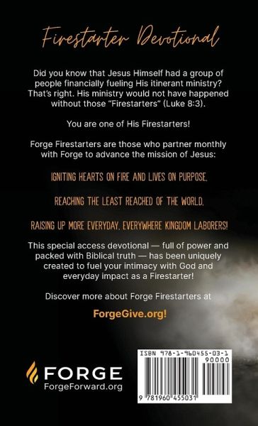 Fire Starter is a collection of 30 daily devotionals to grow readers in their walk of every day, everywhere Kingdom Laborship. Readers will be encouraged every day with a verse, devotional, challenge, and prayer.