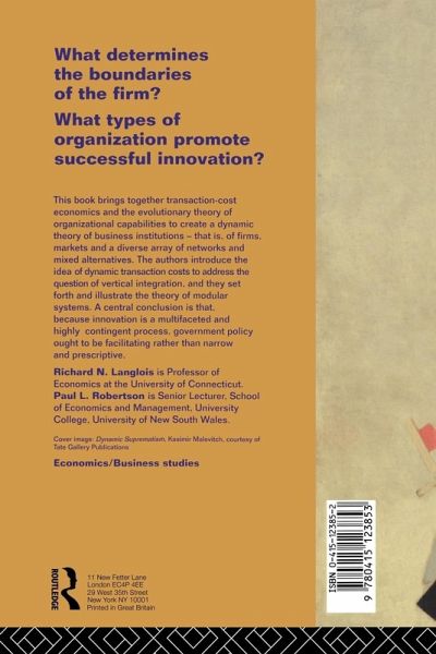 Richard N. Langlois is Professor of Economics at the University of Connecticut, Storrs. His research interests include the economics of organization, the economics of technology, and economic history. He is the editor of Economics as a Process: Essays in the New Institutional Economics (1986) and the lead author of Microelectronics: An Industry in Transition (1988). Paul L. Robertson is a Senior Lecturer in the Department of Economics and Management at University College, University of New South Wales. In recent years, he has taught strategic and project management as well as economic history. In addition to many articles, he is the co-author, with Sidney Pollard, of The British Shipbuilding Industry, 1870-1914 (1979).