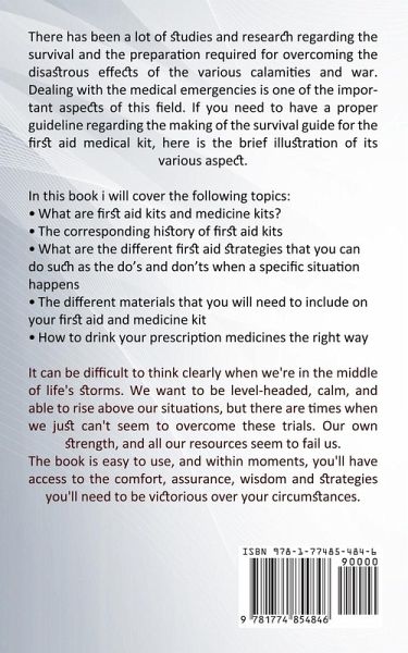 There has been a lot of studies and research regarding the survival and the preparation required for overcoming the disastrous effects of the various calamities and war. Dealing with the medical emergencies is one of the important aspects of this field. If you need to have a proper guideline regarding the making of the survival guide for the first aid medical kit, here is the brief illustration of its various aspect. In this book i will cover the following topics:What are first aid kits and medicine kits? The corresponding history of first aid kits What are the different first aid strategies that you can do such as the do's and don'ts when a specific situation happens The different materials that you will need to include on your first aid and medicine kit How to drink your prescription medicines the right way It can be difficult to think clearly when we're in the middle of life's storms. We want to be level-headed, calm, and able to rise above our situations, but there are times when we just can't seem to overcome these trials. Our own strength, and all our resources seem to fail us. The book is easy to use, and within moments, you'll have access to the comfort, assurance, wisdom and strategies you'll need to be victorious over your circumstances.