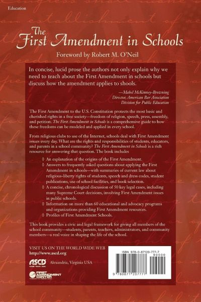 What are the First Amendment rights? How do you resolve questions about the rights of students, educators, and parents in a school setting? The First Amendment to the U.S. Constitution protects the most basic and cherished rights of society--religion, speech, press, petition, and assembly. Anyone who wants to know more about those freedoms in the context of schools will find The First Amendment in Schools a rich resource for study and application. The book includes * An explanation of the origins of the First Amendment * A concise, chronological history of 50 legal cases, including many landmark decisions, involving the First Amendment in public schools * Answers to frequently asked questions about the practice of the First Amendment in schools, covering specific issues of religious liberty, free speech, and press as they affect school prayer, use of school facilities, dress and speech codes, student press, book selection, and curriculum * General information on First Amendment expression and practice in schools * Information on more than 60 educational and advocacy programs and organizations for First Amendment resources * A profile of First Amendment Schools This book provides a civic and legal framework for giving all members of the school community--students, parents, teachers, administrators, and community members--a real voice in shaping the life of the school.