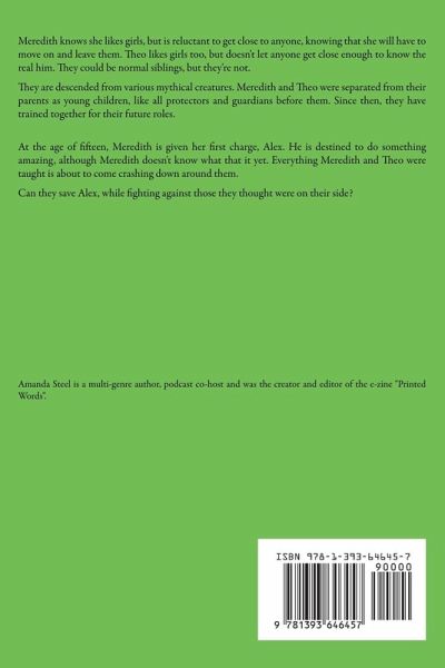Meredith knows she likes girls, but is reluctant to get close to anyone, knowing that she will have to move on and leave them. Theo likes girls too, but doesn't let anyone get close enough to know the real him. They could be normal siblings, but they're not. They are descended from various mythical creatures. Meredith and Theo were separated from their parents as young children, like all protectors and guardians before them. Since then, they have trained together for their future roles. At the age of fifteen, Meredith is given her first charge, Alex. He is destined to do something amazing, although Meredith doesn't know what that it yet. Everything Meredith and Theo were taught is about to come crashing down around them. Can they save Alex, while fighting against those they thought were on their side?
