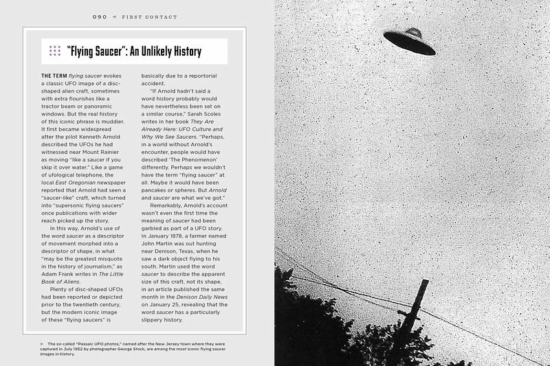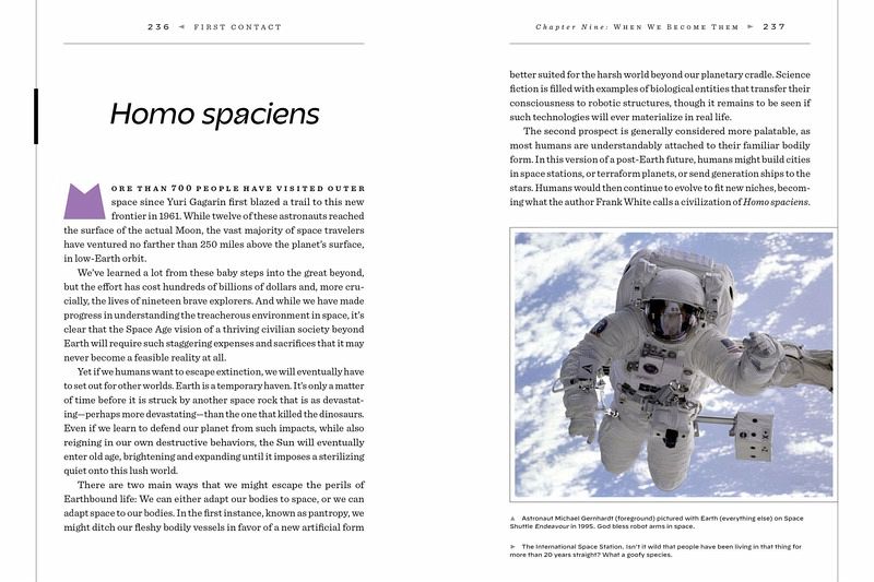 A narrative and visual exploration of humanity’s age-old search for and fixation with extraterrestrials. First Contact explores the ancient idea—and epic quest to prove—that we are not alone in the universe. Presented in a heavily illustrated cabinet of curiosities format, the book explores our fascination with aliens from early history to present day, including chapters on alien conspiracy theories, aliens in science fiction, the actual science behind our search for aliens, and what happens if and when they come…or, if we are in fact descended from them. Each chapter is filled with bite-sized explainers and longer sections on meatier topics such as habitable zones, xenolinguistics, and UFO religions. Smaller topics include alien abductions, ancient astronauts, exodinosaurs, Project Cyclops, and the Great Moon Hoax.