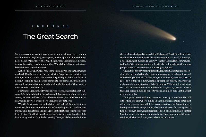 PROLOGUE: THE GREAT SEARCH Humans have expected for tens of thousands of years that we are not alone in the universe. CHAPTER ONE: ANCIENT ALIENS The debate over the existence of extraterrestrial life takes many twists and turns throughout history. CHAPTER TWO: WHERE IS EVERYBODY? Astronomical advances in the twentieth century unveil an unexpectedly silent universe. CHAPTER THREE: POP CULTURE ALIENS We haven’t found real aliens yet, but our countless fictional versions will tide us over until we do. CHAPTER FOUR: FLYING SAUCERS As scientists look to find life in space, many people believe it is already here on Earth. CHAPTER FIVE: THE ALIEN NEXT DOOR The search for life in our solar system includes many tantalizing nearby worlds. CHAPTER SIX: DEEP SPACE The search for life beyond the solar system has been supercharged by exoplanet discoveries and hunts for technosignatures. CHAPTER SEVEN: CONTACT Preparations for a post-detection future are in full swing. CHAPTER EIGHT: NO CONTACT What would it mean to humanity if we never found alien life? CHAPTER NINE: WHEN WE BECOME THEM If humans become a spacefaring diaspora, we may become the extraterrestrials we seek. AFTERWORD Sources Index Acknowledgments Photo Credits