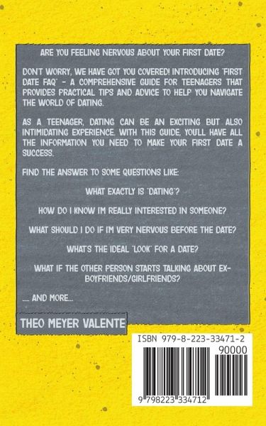 Are you feeling nervous about your first date? Don't worry, we have got you covered! Introducing "First Date FAQ" - a comprehensive guide for teenagers that provides practical tips and advice to help you navigate the world of dating. As a teenager, dating can be an exciting but also intimidating experience. With this guide, you'll have all the information you need to make your first date a success. Imagine having the confidence to approach your date with ease, knowing exactly what to say and do. With our helpful tips and tricks, you'll be able to create a positive and memorable first impression. Find the answer to some questions like: What exactly is "dating"? How do I know I'm really interested in someone? What should I do if I'm very nervous before the date? What's the ideal "look" for a date? What if the other person starts talking about ex-boyfriends/girlfriends? …. and more… About the author Theo Meyer Valente is a renowned expert in adolescent matters, dedicating himself to understanding the complexities and wonders of this stage of life. With over a decade of experience in the field, Theo employs an empathetic and evidence-based approach, setting him apart as a leading figure in the area. His passion is to assist young individuals in navigating the challenges and triumphs of adolescence, providing them with the tools necessary to thrive.