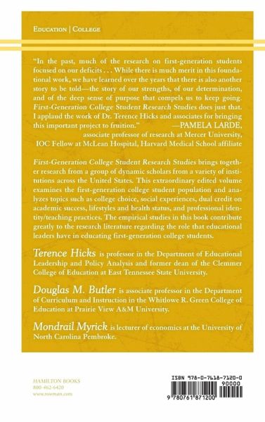 First-Generation College Student Research Studies offers uniquely designed chapters that are drawn from both quantitative and qualitative theoretical frameworks found in higher education. This edited volume is a must-read that contributes greatly to the research literature surrounding this student population.