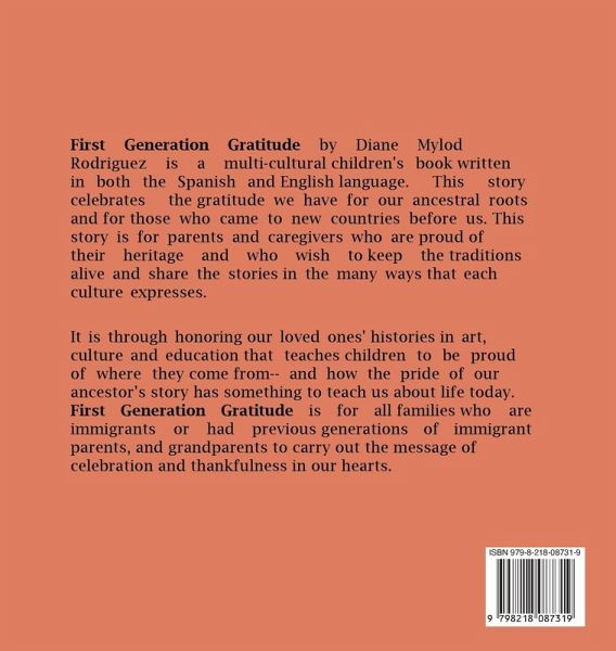 First Generation Gratitude is a children's book for all ages. This book is for anyone who would like to pass their gratitude and ancestry history down to their children. It is for parents and caregivers who are proud of their heritage roots and who wish to keep their traditions and stories alive. By practicing gratitude for our loved one's authenticity, it teaches children the importance of being proud of who they are and how special it feels to keep story-telling close to their hearts. This book is also to honor all families who are immigrants or had previous generations of immigrant parents, grandparents and so on.