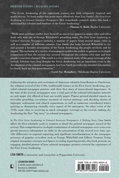 Gathering the attention and excitement of American colonists from Boston to Charleston, the religious revival of the 1740s traditionally known as the First Great Awakening provided colonial newspaper printers with their first story of transcolonial importance. At the time of the Awakening, American newspapers had become a vital part of the colonial information network as each major city offered at least one weekly paper. Papers printed weekly reports on revivalist preaching, eye-witness accounts of revival meetings, shocking stories of improper ordinations and church separations, as well as numerous contributed letters praising or denouncing virtually every aspect of the Awakening. No other colonial event of the 1740s, including the War of the Austrian Succession (1740-1748) and the Jacobite Rebellion (1745), came close to receiving as much newspaper coverage, making the First Great Awakening America's first "Big Story." In The First Great Awakening in Colonial American Newspapers: A Shifting Story, Lisa Smith offers the first scholarly work to examine in detail the printed newspaper record of the revival. This comprehensive, in-depth examination of colonial newspapers over a ten-year period uncovers information on shifts in the presentation of the revival over time, specific differences in regional reporting, and significant transformations in the newspaper personae of popular revivalists such as George Whitefield and Gilbert Tennent. Using original newspaper excerpts and graphs revealing reporting trends, this book presents an engaging, detailed picture of how colonial newspaper printers covered the experience of the First Great Awakening.